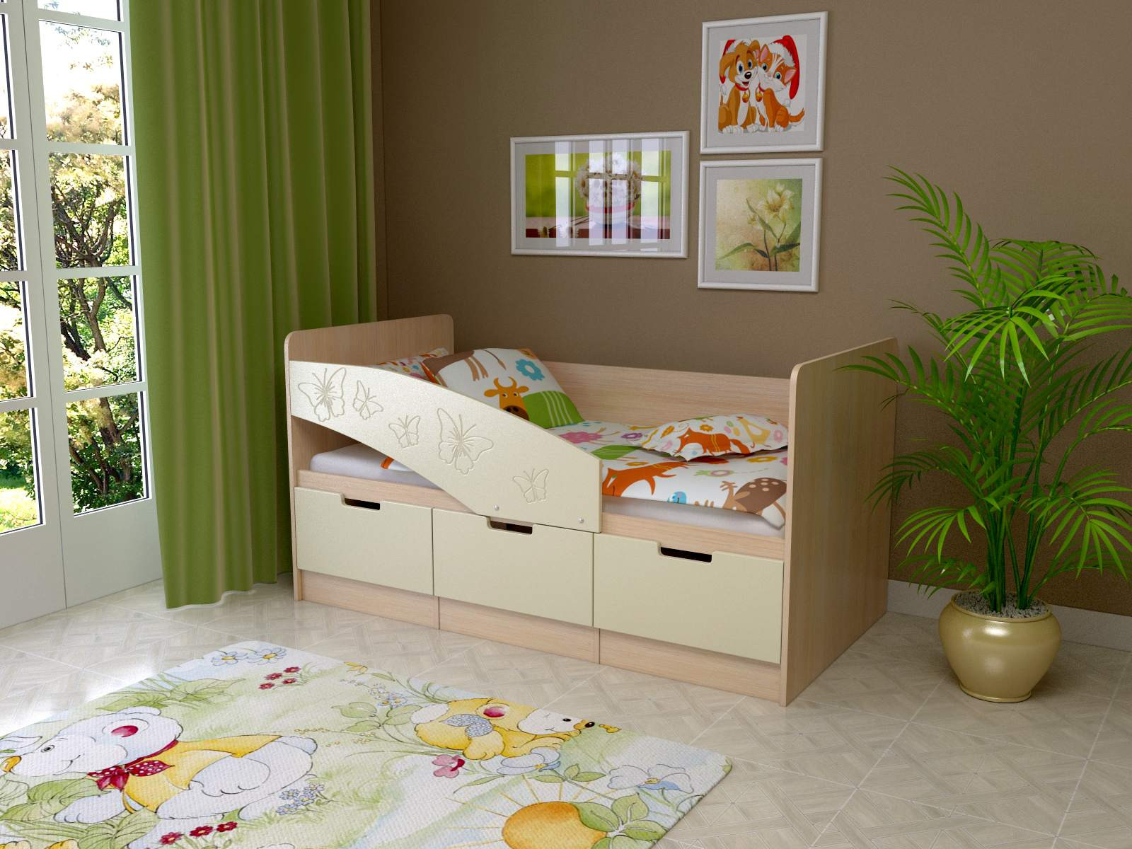 —Детская Кровать "Ириска-8" МДФ Бабочки (Ш-850 x В-850 x Д-1630/1830 мм)/Разные Цвета