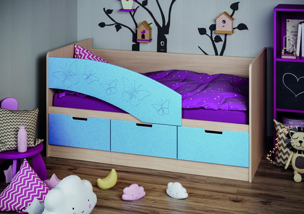 Детская Кровать "Ириска-8" МДФ Бабочки (Ш-850 x В-850 x Д-1630/1830 мм)/Разные Цвета