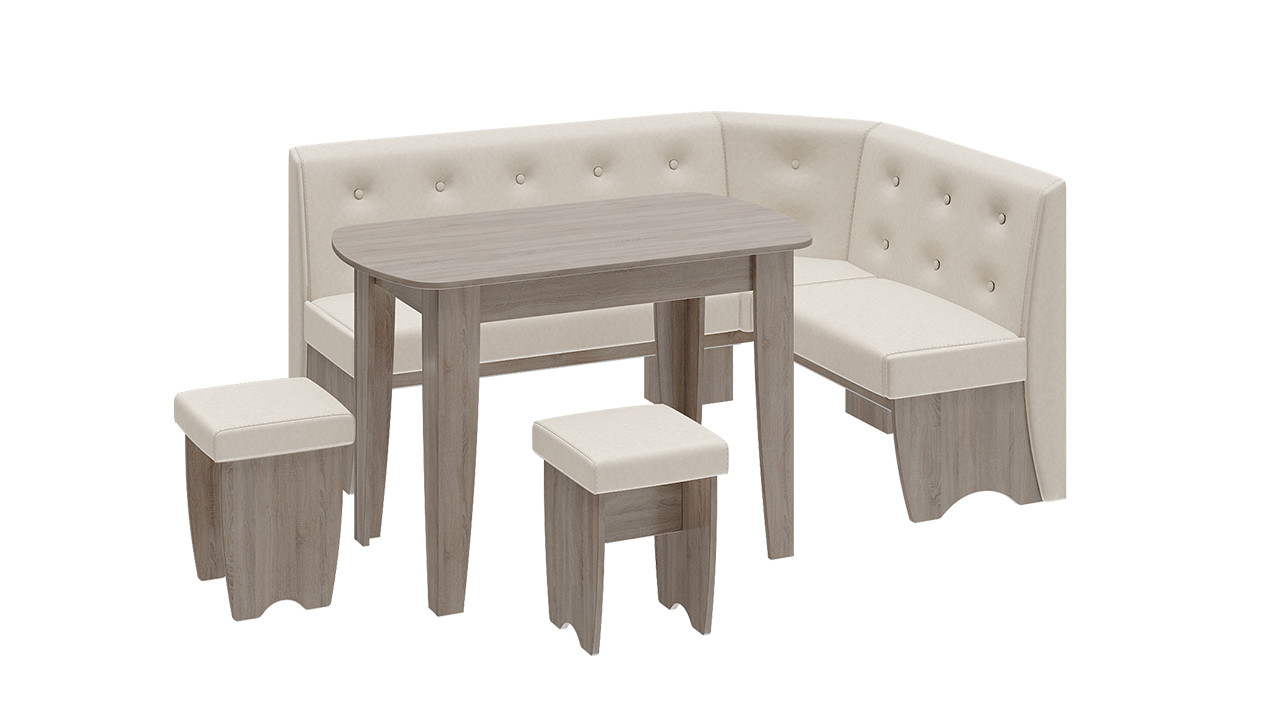 • Обеденная зона "Барселона" состоит из удобной угловой скамьи, практичного стола и компактных табуретов.