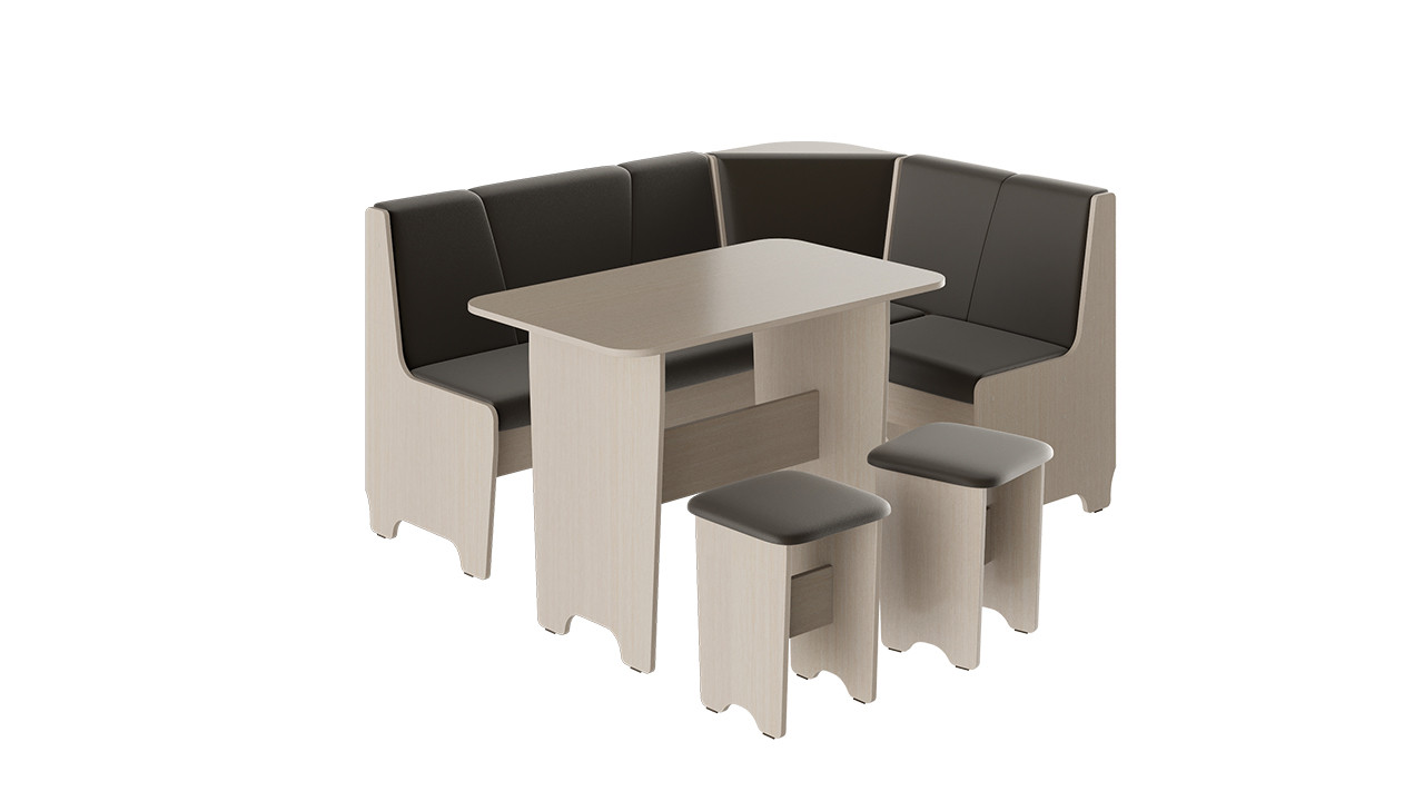 - Обеденная зона "Техас" состоит из удобной угловой скамьи, практичного стола и компактных табуретов.