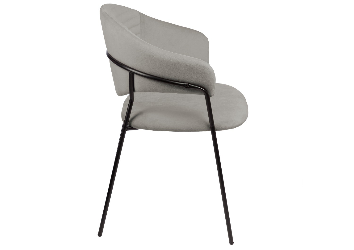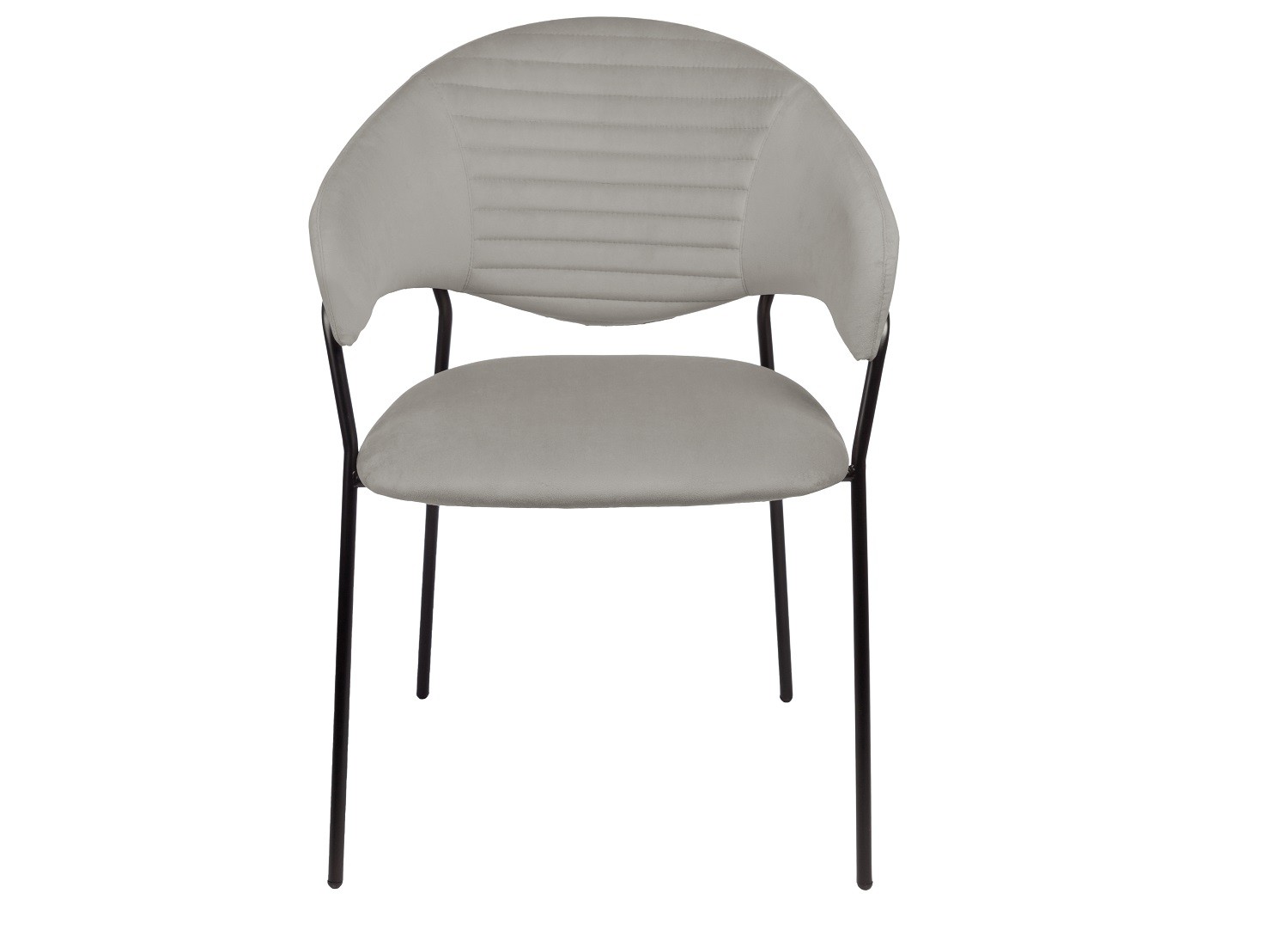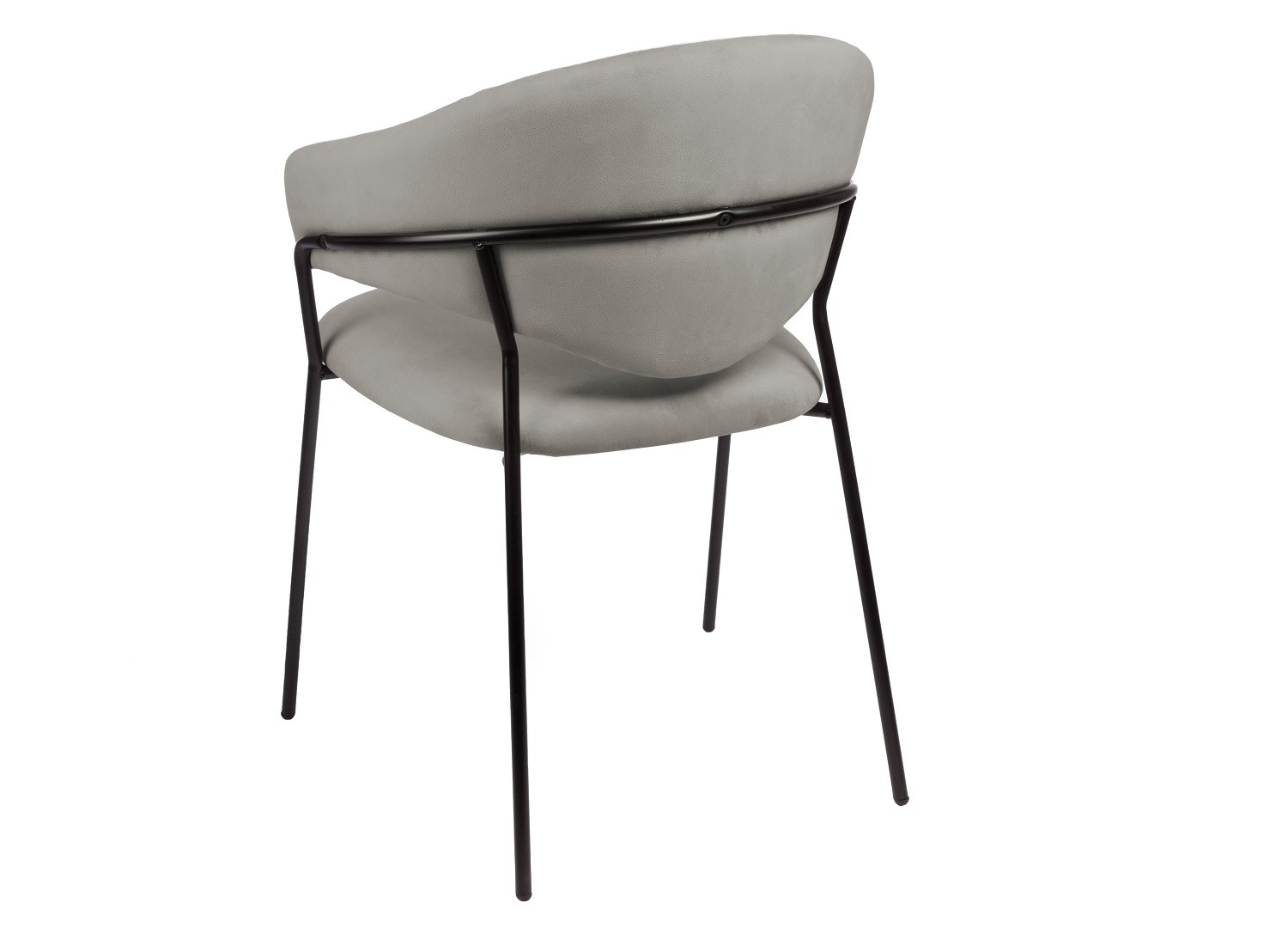 Украсить интерьер Вашей современной кухни и добавить комфорта от пребывания за обеденным столом поможет стул Хаг. Изделие имеет прочный металлический каркас,полукруглую спику и мягкое сиденье. Несмотря на визуальную легкость, это надежная модель выдерживает нагрузку до 120 кг. Особенности черные металлические опоры материал обивки - устойчивый к деформациям и приятный на ощупь серый бархат максимальная нагрузка - 120 кг