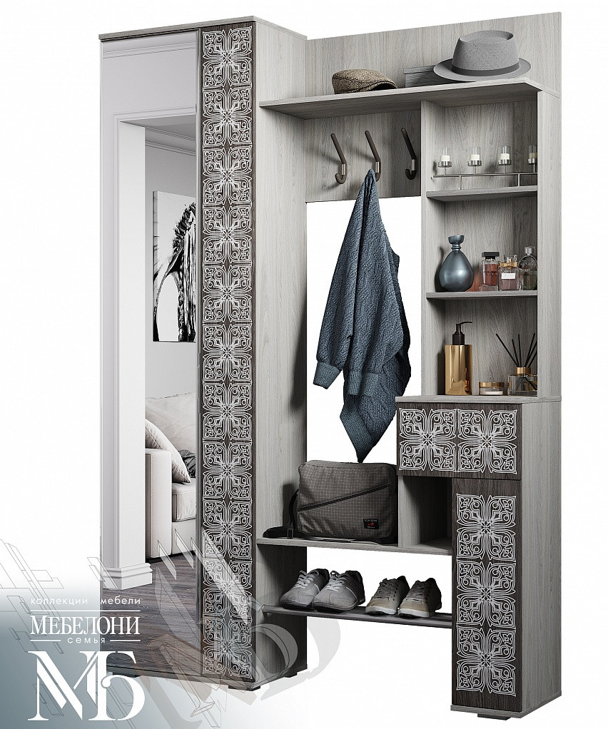 Стильный дизайн, четкость и лаконичность линий, гармоничное сочетание темных и светлых фактур - здесь есть все, чтобы подчеркнуть свою индивидуальность и безупречный вкус. Дополнительным удобством в использовании послужит открытая обувница и возможность сборки модели как на левую, так и на правую сторону.
