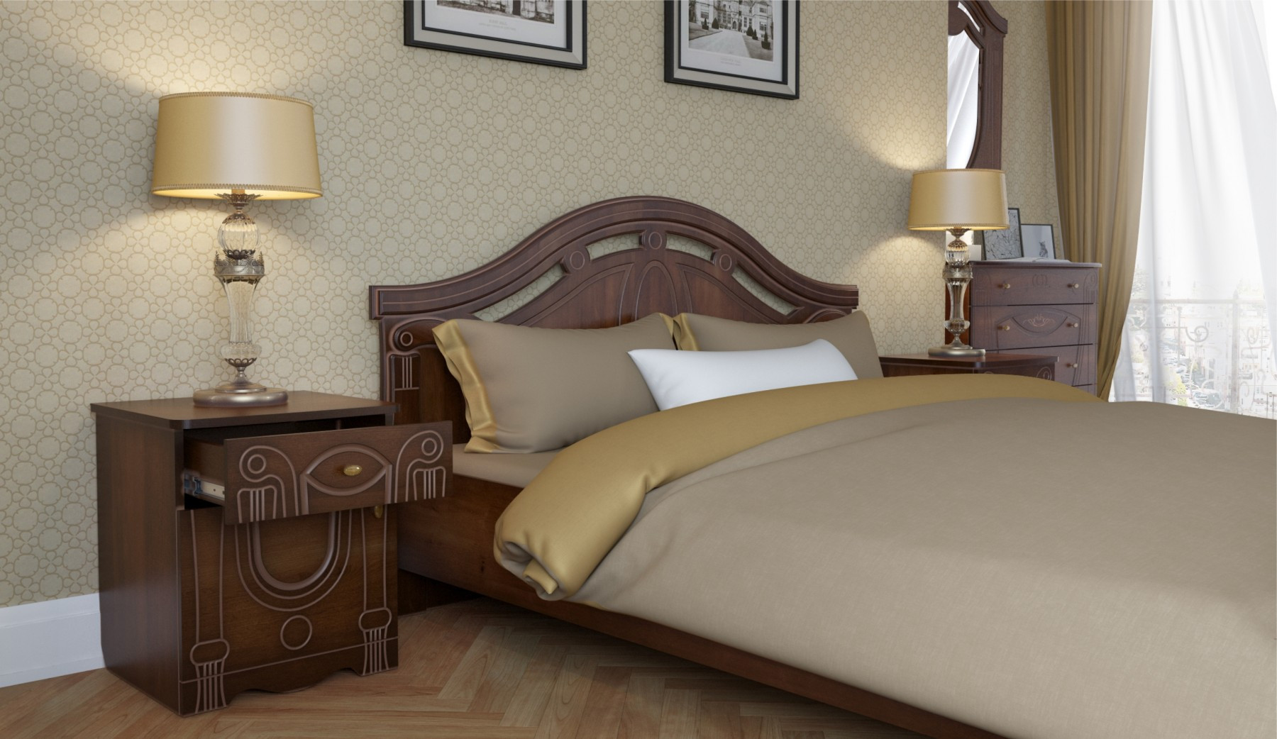 —Спальный Гарнитур Александрина Орех Экко/Патина Золото