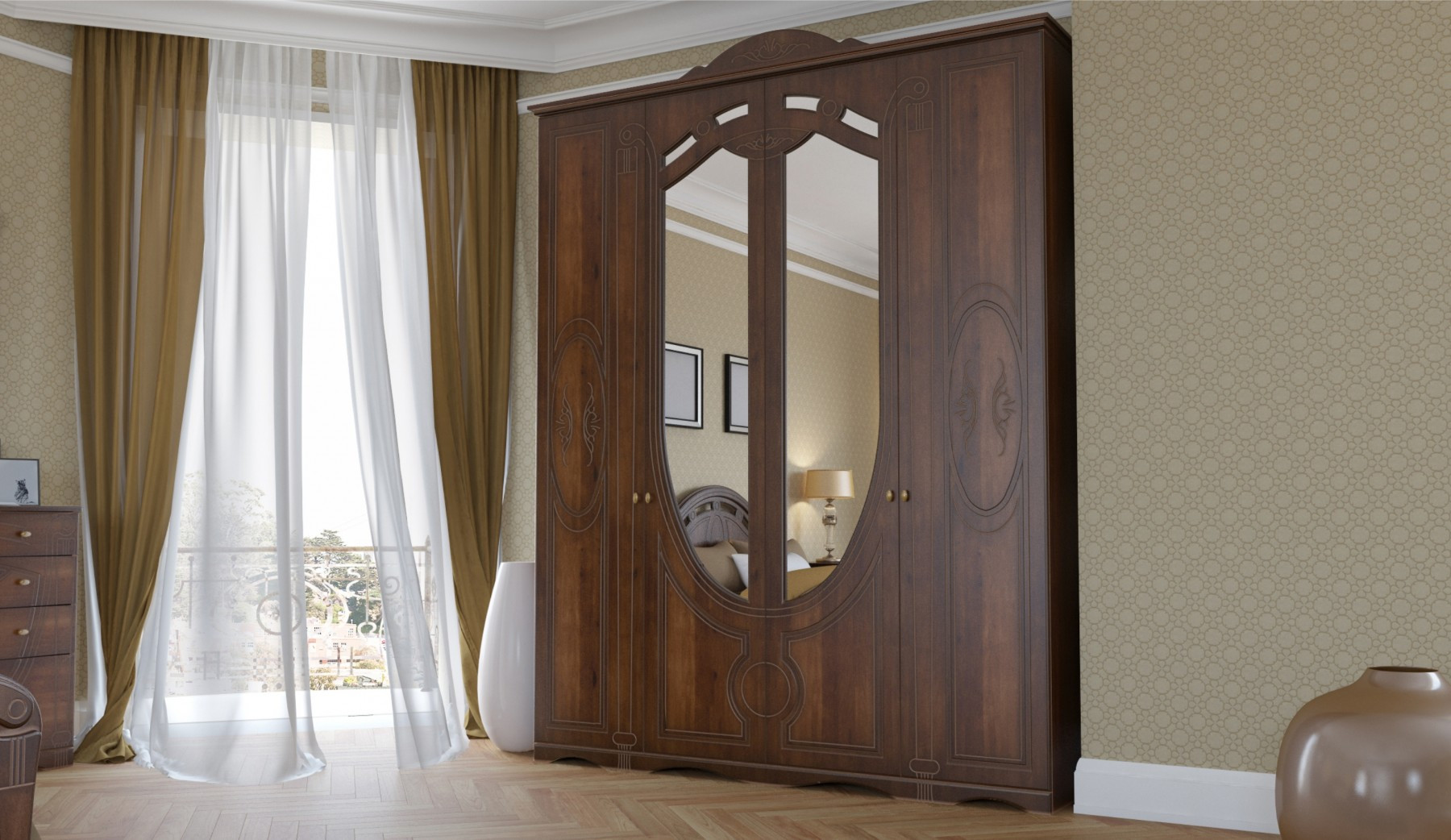 • Шкаф 4-х Створчатый: Ширина 1808 мм х Глубина 626 мм x Высота 2335 мм
